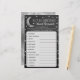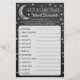 This "over the moon" game is perfect for anyone having a baby shower this year. The design features a silver moon with stars on a chalkboard effect background and easy to personalize template wording. Simply give these game sheets out to your guests to play at the shower, whoever unscrambles the words first, wins a prize of your choice! Answers: 1) Diapers 2) Baby Shower 3) Wipes 4) Nursery 5) Blanket 6) Pacifier 7) One-sie 8) Swaddle 9) Activity Mat 10) Teether 11) Bassinet 12) Bottle 13) Rattle