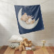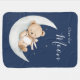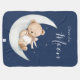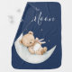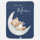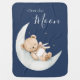 Over the moon theme baby shower baby blanket. Sweet hand drawn teddy bear sleeping on a moon. The bold blue color sets the tone for a sweet gender neutral themed baby blanket.