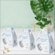 We are over the moon elegant celestial baby shower favor boxes in light blue and silver grey with a decorated moon and the baby face, diamonds and stardust. Great for a boy baby shower party all year round. Easily personalize the text. - Kate Eden Art