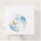 Dreamy boy's baby shower favor tag featuring watercolor texture in blue on the back with faux gold glitter moon and stars. The text says "we're over the moon."