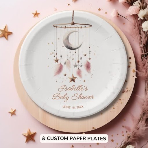 Over the Moon Boho Celestial Girl Baby Shower Custom Paper Plates