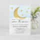 Everyone will love this beautiful Over The Moon baby shower invitation. This design features a celestial gold moon and stars with a blue sky and fluffy white clouds. Easily edit all of the wording to create a unique invitation! See the whole collection for more matching items!