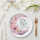 Customizable floral moon baby shower paper plates featuring a watercolor pastel crescent moon and floral decoration on a white background.