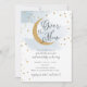 Over the Moon Gold Stars Blue Baby Shower Invitation