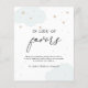 In lieu of favors card features watercolor blue clouds and gold stars. Customize with your organization name or charity.