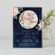 Over The Moon Navy Blue Baby Shower Pink Rose Gold Foil Invitation