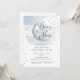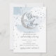 Over the Moon Silver Stars Blue Baby Shower Invitation