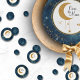 Celebrate in cosmic style with this stunning baby shower confetti! 🌙✨ Featuring a dark blue background, delicate gold & white stars, a glittery gold moon, and a tiny rocketship 🚀, it sets the perfect tone for your "Houston, We're Over the Moon, We Have a Boy!" event.