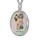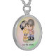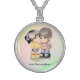 This design is of a girl and boy standing arm and arm. They are staring into each others brown eyes while smiling. Best friends forever. The image also has a rainbow colored backround. Give this as a gift for that special day. This necklaces is in sterling and available in assorted sizes.