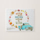 Remind all your friends and family of the joy of giving thanks with this puzzle featuring a watercolor vintage pick up truck with dog and thanksgiving foods and symbols.