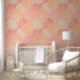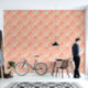 An overlapping design with a pastel peach color and traditional Chinese fans.
