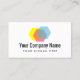 Overlapping hexagon logo business card template. Modern color overlap design. Colorful transparent hue geometric shaped icon. Professional cards for company start up. Yellow red and blue printing colors.