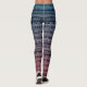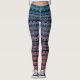 Leggings with navy blue lace overlay pattern on a blue to red gradient background.