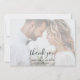 Pretty and modern, this wedding thank you card features your photo with a muted vellum look overlay. Script typography, names and wedding date are on the front. Full color photo photo on the back with a place for your thank you message. See our coordinating items.