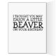 JUST A CUTE LITTLE BEAVER FOR THEIR BIRTHDAY. NOT DIRTY AT ALL UNLESS THEIR MIND IS IN THE GUTTER. LOL