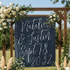 Welcome guests to your wedding or set up an epic selfie station with this simple and elegant backdrop featuring your names and wedding date in white calligraphy script lettering on a navy blue background, oversized to take up the entire design area. Enter your personalization, then use the Design Tool to adjust size and positioning for a custom look.