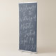 Welcome guests to your wedding with this simple and elegant retractable banner featuring white calligraphy script lettering on a navy blue background, oversized to take up the entire banner. Enter your personalization, then use the Design Tool to adjust size and positioning.