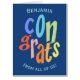A colorful very big congratulations card. This modern typographic jumbo card is the perfect way to say congrat someone in style. Personalize with a custom name and message. The message on the front says 'from all of us' but can be changed. Perfect for an office coworker or group signature oversized card.