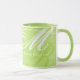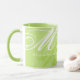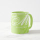 A stylish sharp-green mug-of-coffee with your own special name and initials monogrammed in elegant script font style... unique personalization... sharp green is a trendy nice color, a medium light shade of yellow-green.
