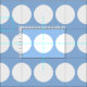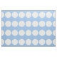 Stylish geometric fabric features a bold pattern of large white polka dots on a pale blue background.