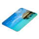 Rectangular souvenir photo magnet with a honeymoon overwater bungalow in a luxury resort in the clear blue lagoon of the pacific island of Bora Bora, near Tahiti in the French Polynesia archipelago with the text "Bora Bora, French Polynesia".