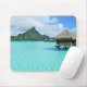Mousepad with a luxury overwater bungalow resort in the clear blue lagoon of the pacific island of Bora Bora, near Tahiti in French Polynesia.