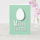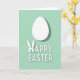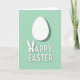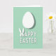 This design shows a smooth white egg shape near the top, floating over a soft pastel green background that feels like early spring 🌷. Below it, a short two-word Easter greeting sits centered in white, using simple sans-serif lettering with a light shadow that lifts it off the page. The first letter of the first word is altered so its upright strokes stretch upward and curve into long bunny ears 🐰, like two friends leaning close and sharing a private joke. The spacing around the egg and the words leaves plenty of open area, giving the layout an easy, unhurried look. Gentle drop shadows under the egg and each letter add depth, as if everything is hovering slightly above the green surface. The lighting appears soft and diffused, with no harsh edges, keeping the mood calm and quietly festive. The message is placed directly beneath the egg, aligned to the center, with the ear-shaped letter standing out as the main focal point. A pale green field surrounds the white elements, and the bunny-ear letter rises above the rest of the text like two curved white ribbons.