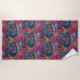 Owl Art Drawing Blue owl and pink flowers. Beach Towel