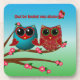Owl be loving you-is a digital graphic art design. In the center is a pair of his and her owls hanging out in a floral tree holding wings. The female owl is red with pink and gold scroll work and green eyes. The male owl is blue with aqua blue eyes. The owls have red and gold hearts for wings and a red heart face too. The pair sit on a brown tree limb with little pink flowers and green leaves. The background is a pastel blue-green representing sky and ground. At the top is decorative red text that reads: Owl be loving you always. A little red heart and flowers embellish the text. One text area is in place at the bottom for you to edit and personalize. Edit the text to say anything you like. Delete the text if it's not wanted. -This design does vary a bit depending upon the product.