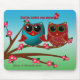 Owl be loving you-is a digital graphic art design. In the center is a pair of his and her owls hanging out in a floral tree holding wings. The female owl is red with pink and gold scroll work and green eyes. The male owl is blue with aqua blue eyes. The owls have red and gold hearts for wings and a red heart face too. The pair sit on a brown tree limb with little pink flowers and green leaves. The background is a pastel blue-green representing sky and ground. At the top is decorative red text that reads: Owl be loving you always. A little red heart and flowers embellish the text. One text area is in place at the bottom for you to edit and personalize. Edit the text to say anything you like. Delete the text if it's not wanted. You may also delete the red upper text if you do not want it. This design may vary a bit depending upon the product.