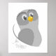 A cute owl from a collection of 4 adorable animal illustrations with an inspirational quote wall art posters for children's room.