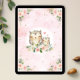 Thank your guests with this beautiful owl themed thank you card. The design features a cute baby owl with her mommy and pretty watercolor blush pink roses and greenery.