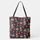 A black large tote bag for teacher with the cute pattern of a brown little owl , some books , red apples and felt pens . You have the option to downsize to the medium size if you wish to .