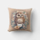 Owl Cup of Coffee Painting Throw Pillow