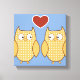Perfect for kid's bedroom or playroom - design of two owls standing together with a red love heart between them on a sky blue background. Cute and quirky cartoon design inspired by love and friendship.