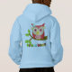 A pretty owl of bright coral with pink and white polka dots and a blue flower sits on a tree branch and multi-colors text reads "I'm a Hoot!" on hoot owl T-shirts, bodysuits, mugs, cards, stickers, bags, stickers, keychains, pillows, journals, and other owl apparel and gift items.