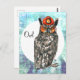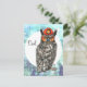 Funny owl in a mining helmet. Hand-drawn watercolor illustration. Customizable text.