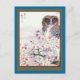 Vintage Japanese woodblock illustration of an owl in a cherry tree.