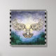 Impressionist style original painting by Digital Artist, Leslie Sigal Javorek, features a steady-eyed owl flying straight at the viewer w/its' wings spread wide over a northern pine forest blanketing the foothills that flank a distant body of water, just at the break of dawn. On a 16"x16"x1.5" gallery-wrapped canvas, this painting evokes a sense of quiet strength, the smell of crisp fresh mountain air, & the majesty of the natural world.