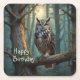 Owl in Magical Forest Square Paper Coaster