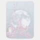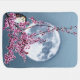 A painting of a Barn Owl perched on the flowering tree branch of a fruit tree, with a Full Moon in the background.
