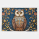 Owl on a branch blue autumn background art nouveau style, William Morris inspired art.