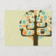Vintage design with an owl and birdies on a tree limb. Great retro colors and feel. Its a wonderful way to send a post card to someone to brighten up their day as well.