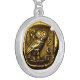 I chose gold plated so that the metal would not react with my skin oils and perspiration. But, I changed the necklace from the gold plated one to a sterling silver. My skin cells will tarnish the silver. But it will not look as bad if some portion of the gold plated necklace somehow became compromised. Zazzle did a find job turning the picture into a pendant for me. As you can see, the colors and the printing of the final product, match the preview. The picture I took is not very clear. But I am pleased with the product I received.