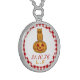Owl on Pumpkin Gingham Pattern Sterling Silver Necklace