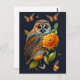 Owl Orange Floral Butterfly Illustration Postcard