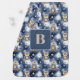 Blue background, decorated with a cute owl pattern, stars and clouds. Personalize and add the kid's monogram letter.
