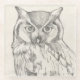Owl Portrait II by Jennifer Goldberger. Features the portrait of an owl skethced in pencil.