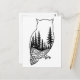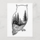 A bold black line drawing of an owl silhouette filled with pine trees and gently flowing lines, blending animal form and nature in a striking double exposure style. Ideal for rustic or woodland-inspired designs.