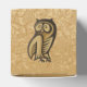 Owl icon on beige grunge background. Symbol of wisdom and wealth.